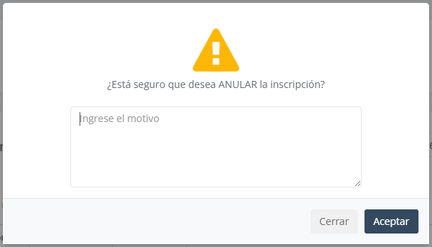 Al presionar en el botón “ANULAR” aparecerá una pantalla de confirmación en la que se deberá digitar el motivo por el cual va a realizar la Anulación: