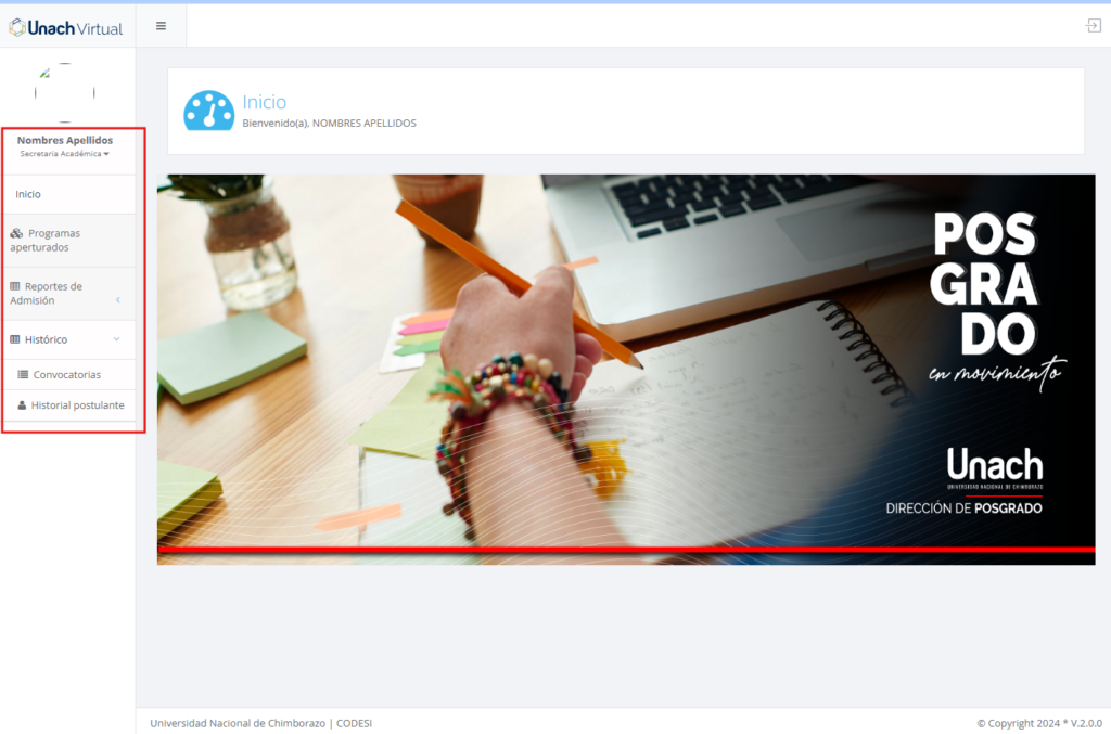 El usuario con el perfil Comunicador/a debe acceder al sistema con las credenciales de su correo electrónico institucional a través del siguiente enlace: https://app.unach.edu.ec:4437/