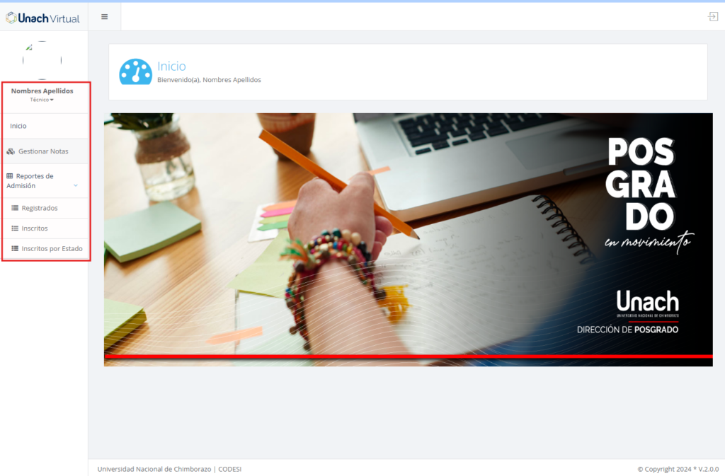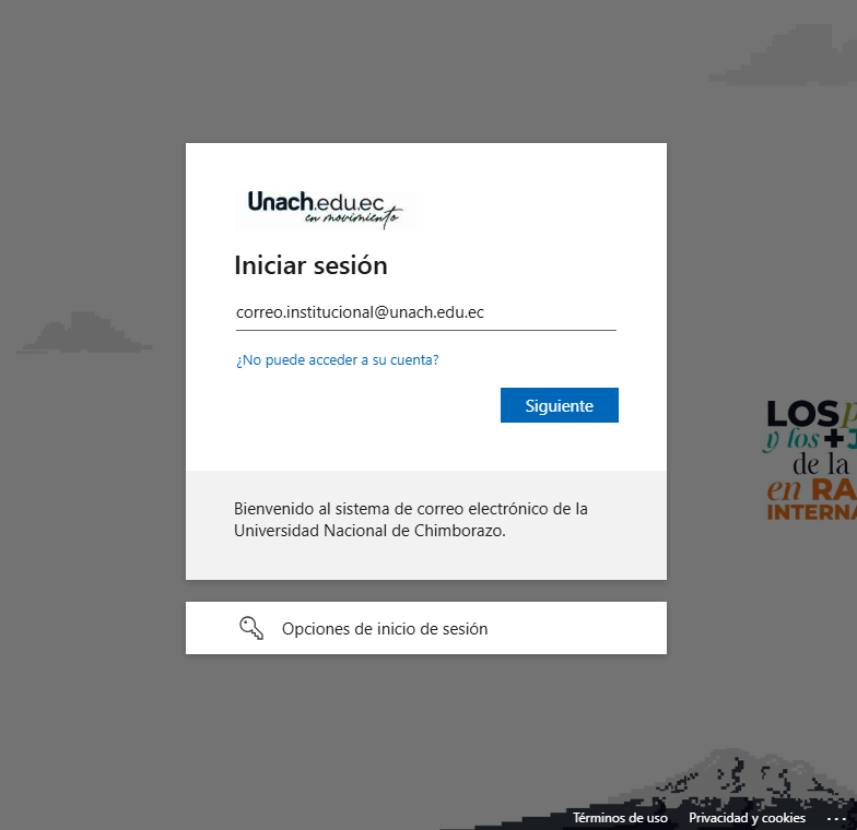 El usuario con el perfil Técnico/a debe acceder al sistema con las credenciales de su correo electrónico institucional a través del siguiente enlace: https://app.unach.edu.ec:4437/