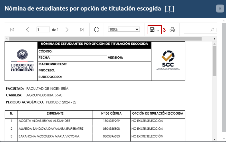Generar reporte de ‘Opciones de titulación seleccionadas por los estudiantes’ :