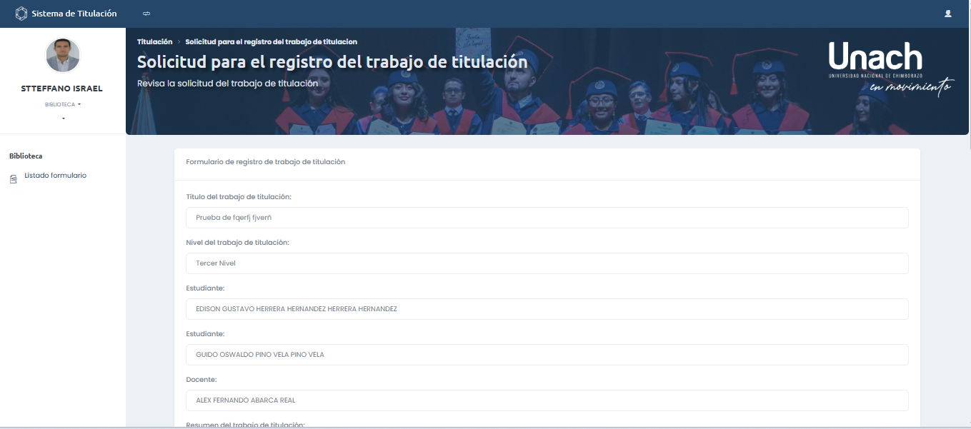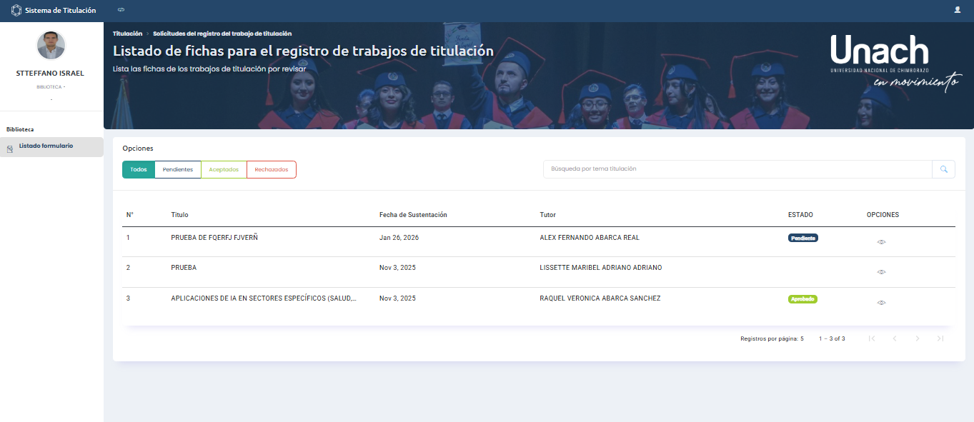 En el listado de formularios se puede ver las solciitudes registradas en el sistema