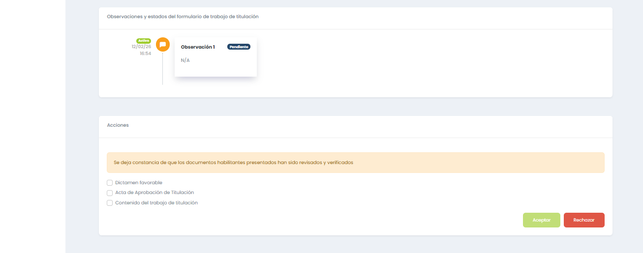 En el mismo apartado se puede realizar la validación del mismo y emitir observaciones de ser el caso